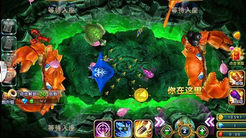 游戏中经常会出现电磁炮蟹、钻头炮蟹、炸弹鱼等特殊鱼种。每种特殊鱼被捕获均会造成对应的特殊效果,对屏幕中其他鱼种造成影响。比如,电磁炮蟹可以把全屏的鱼儿点击捕获,期间内所有鱼的捕获几率增加;而打中炸弹鱼,则会对周围的鱼产生爆炸效果,金币也就哗哗流入你的口袋,一次收入20W金币不在话下。